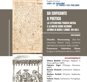 2 marzo 2026 – “Da edificante a poetica: la letteratura yiddish antica e la Mayse Beria veZimra [Storia di Beria e Zimra] (XVI sec.)” – Seminario all’interno del progetto “Ebrei ed ebraismo: le parole per parlarne”