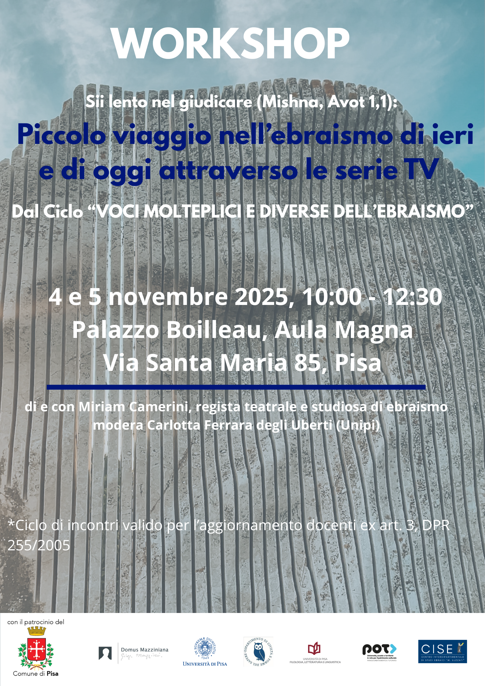 “Sii lento nel giudicare (Mishnah, Avot1:1)”. Piccolo viaggio nell’ebraismo di ieri e di oggi attraverso le serie TV   – Workshop di e con Miriam Camerini, 4-5 novembre 2025